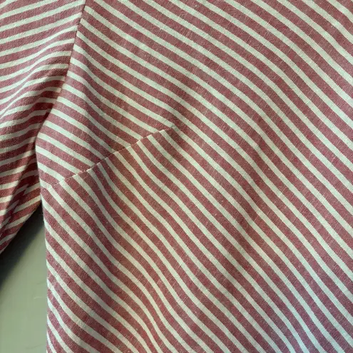 Soft Surroundings red pink rose and white striped cold shoulder landfall tunic top 3/4 length sleeves with openings on shoulders Keyhole opening with button on back V-neck Size large Approximate lay flat measurements: Armpit to armpit 22 inches across Shoulder to hem 31 inches NEW with tags Material: 52% linen 48% rayon