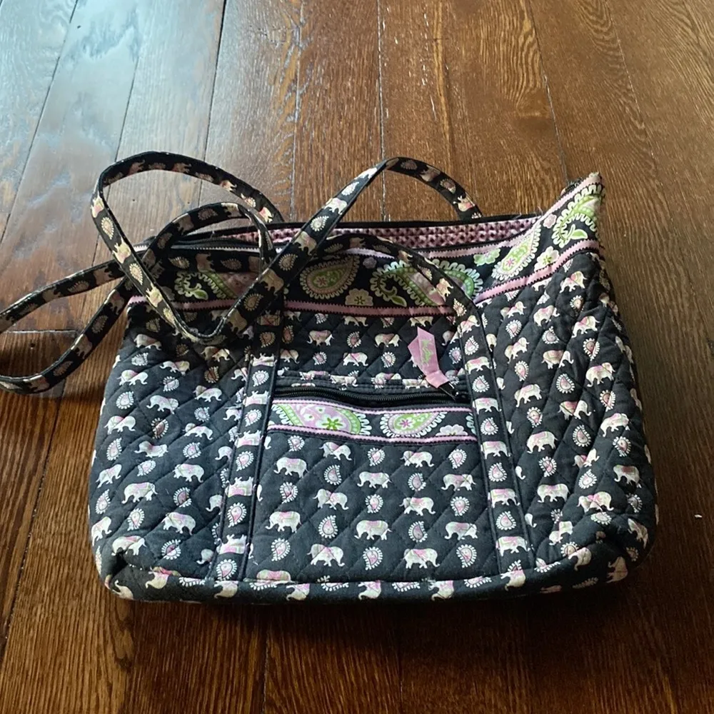 Vera Bradley Black Quilted Shoulder Bag with Pink Elephant Print - $34 - From My