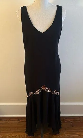 Black Floral Embroidered Evening Gown 90s Y2K size 12 - like new - v neck - embroidery design at bo... Show more