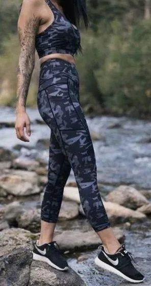 These are built with great compression properties but also with a fabric so light that you barely know they're on. Constructed with sweat wicking 4 way stretch fabric to make these the ultimate performance leggings. Constructed with pockets on both legs High rise Compression, so fits snug Tags: athleisure, Athletic, sporty, retrosport, gym, workout, technical, performance, gorpcore, activewear, utility, practical, cargo, organic, natural, granola girl, hiking, camping, outdoor, running, jogging, walking, cycling, bicycling, peloton, weight lifting, basketball, track, field, practice, yoga, trail, pilates small (6-8) preowned Inseam 26” Outseam 35” Waist 12.5” Rise 10.5” R6