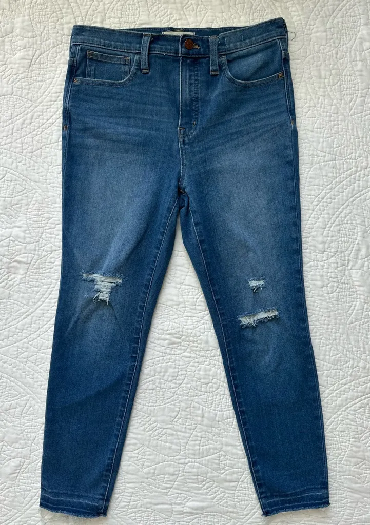 Madewell 10" High Rise Skinny Cropped Ankle Jeans Distressed Size 28 24.5” Inseam Pockets Stretch R... Show more