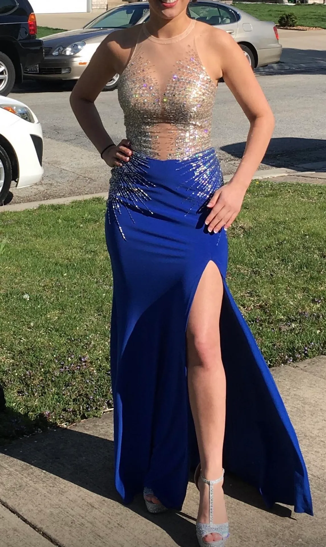 JVN BY JOVANI. worn only once, very good condition. Top is sparkly with mesh and the sparkles conti... Show more