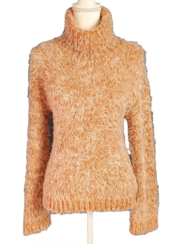 Brand: Abound. Women's Fuzzy Knit Turtleneck Sweater Long Sleeves Tan Lion Marl Sz L NWT