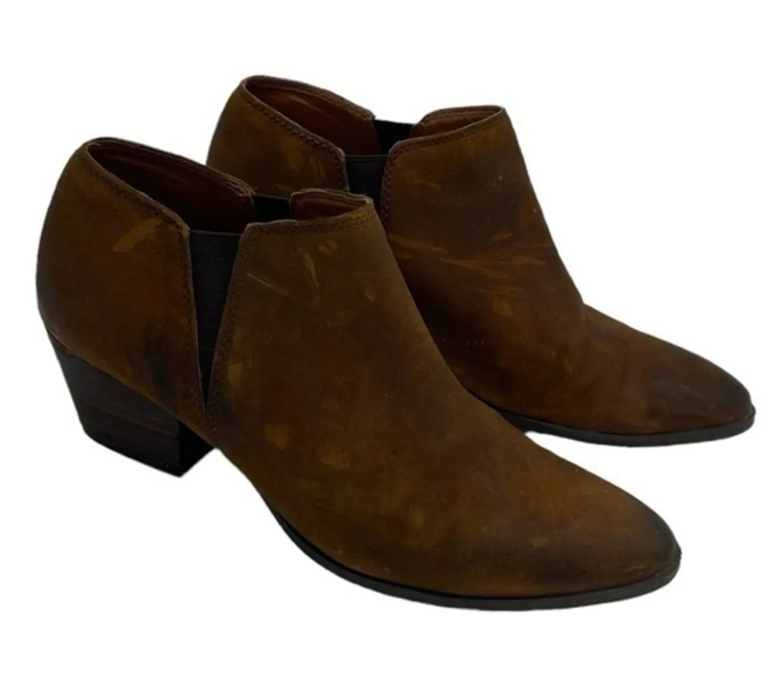 Franco Sarto Gemina Brown Leather Stacked Heel Ankle Booties Women's Size 8.5 Are you looking fo... Show more