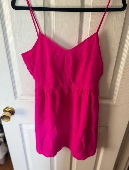 100% Silk hot pink Spaghetti Strap Dress from Madewell. Tag says: Broadway & Broome. Zippered back a... Show more