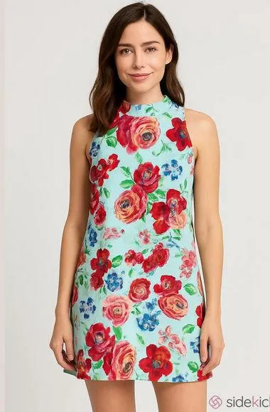 Everly Anthropologie Blue, Mint All over, Rosette, Floral print High neckline, mock neck Sleeveless... Show more