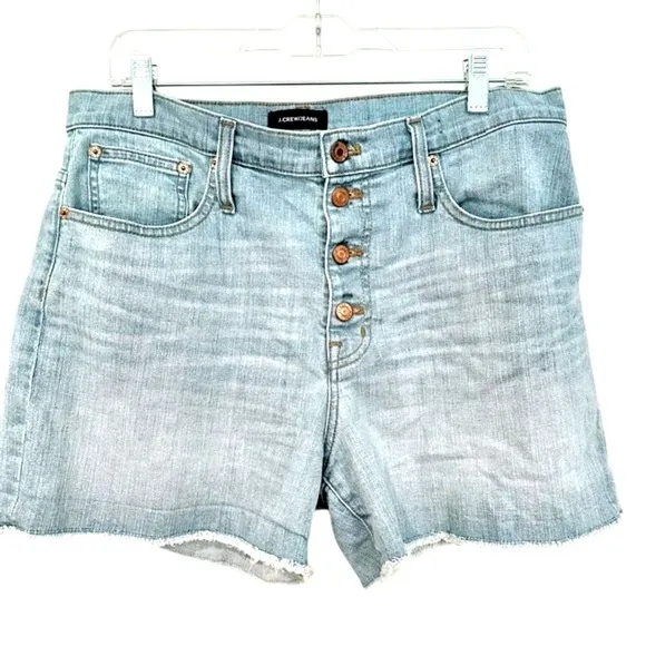 J.Crew High Rise Button Fly Frayed Denim Shorts Womens 30 Light Wash Boho Hippie. These shorts are p... Show more