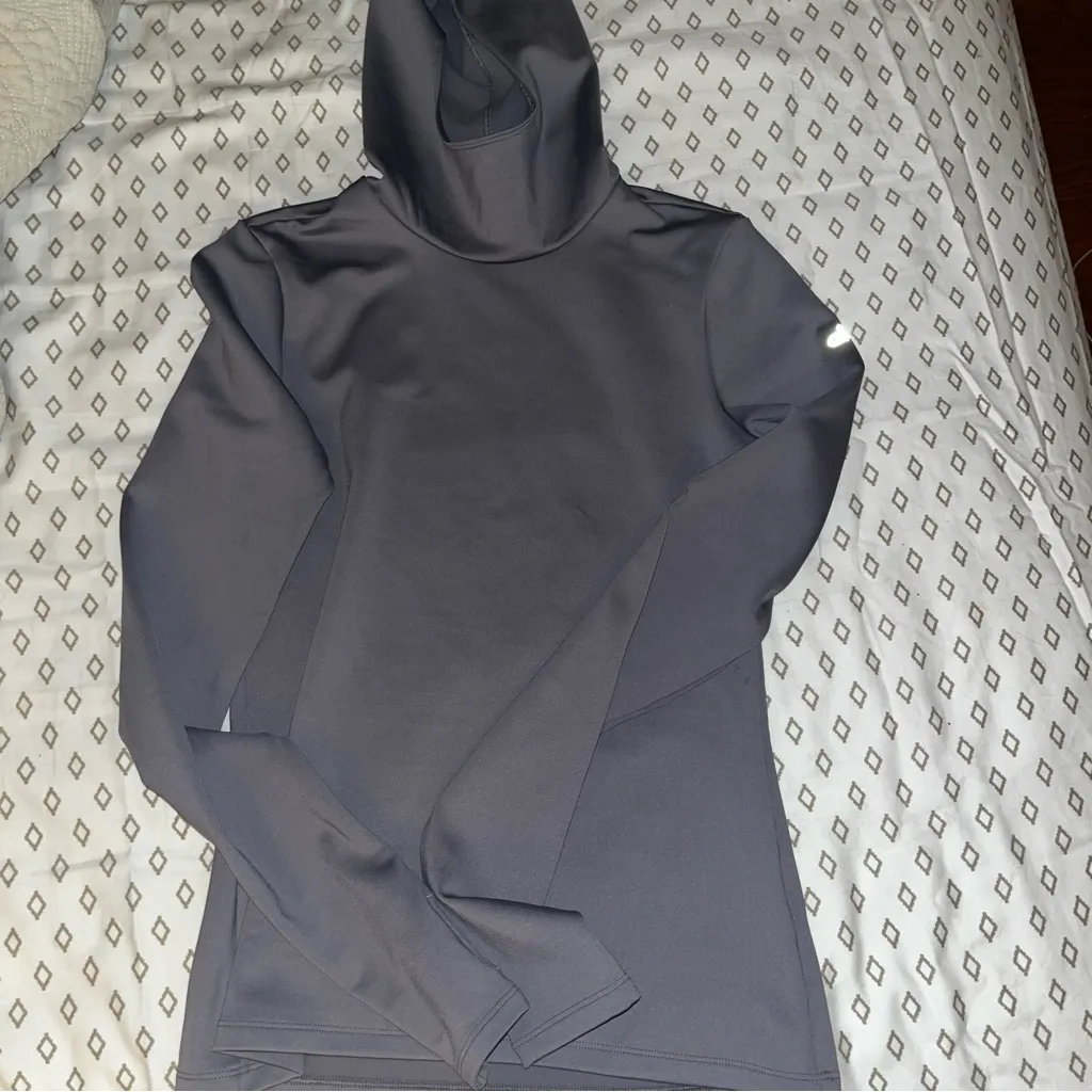 alo yoga airlift winter warm hooded running sweater size small limited edition steel grey