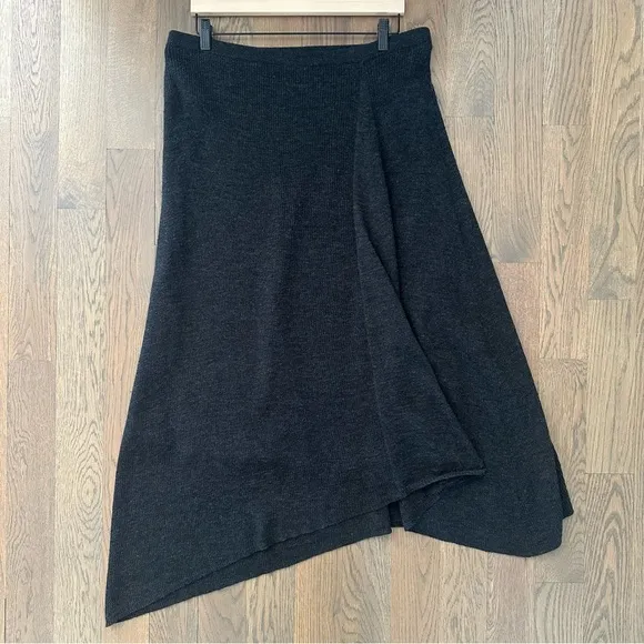 Eileen Fisher ribbed draped midi skirt. In charcoal grey. Elastic waist, fully lined in silk. Panele... Show more