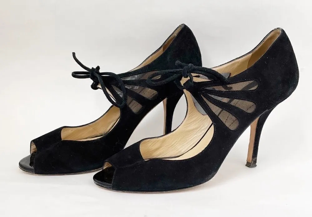 Gorgeous Kate Spade New York Suede pumps with mesh butterfly accent, tie closure, and peel toe. Very... Show more