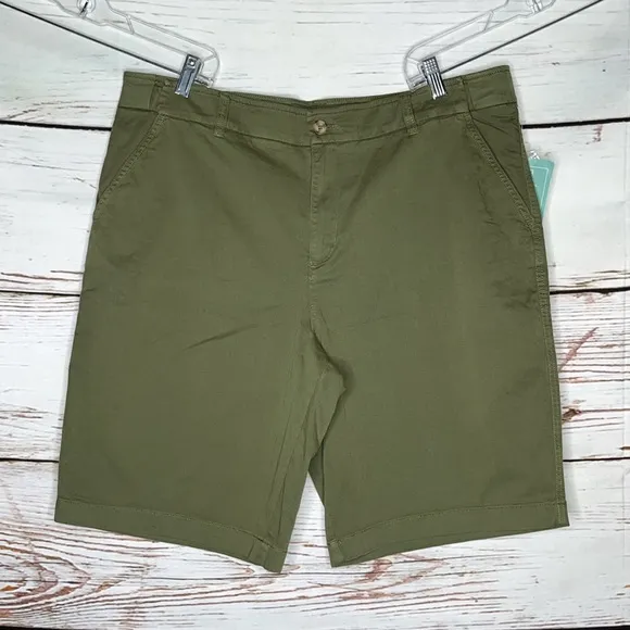 Coldwater Creek Size 18 Olive Green Flat Front Bermuda Shorts. Belt Loops. Partial Elastic Waistband... Show more