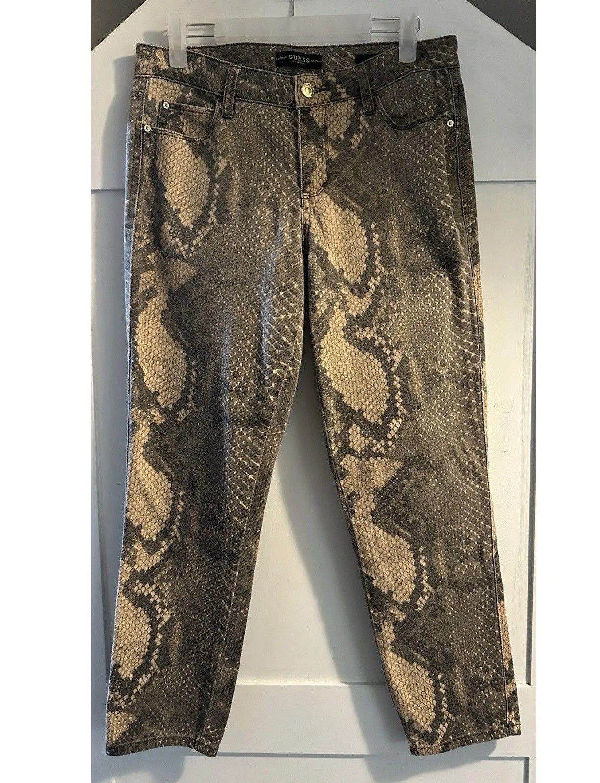 GUESS Samara Sexy Curve Stretch Cropped Skinny Jeans brown and black Snakeskin Print Women's Size 28... Show more