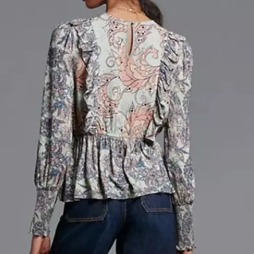 Anthropologie Moira Ruffled Peplum Top Viscose • Ruffled bib • Peplum hem • pullover style