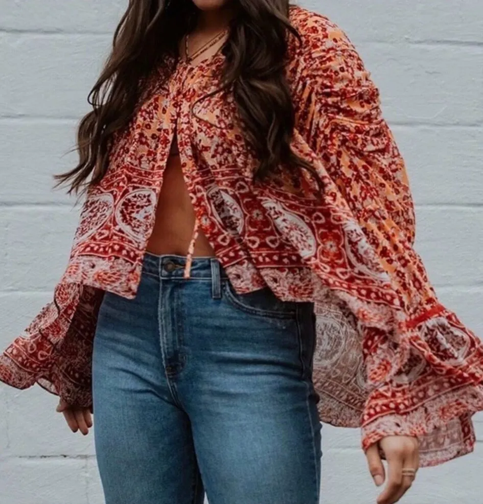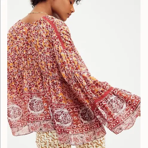 New without Tags Free People Lorriane Tiered Kimono Blouse Size: Small Color: Red Orange Gold So fr... Show more