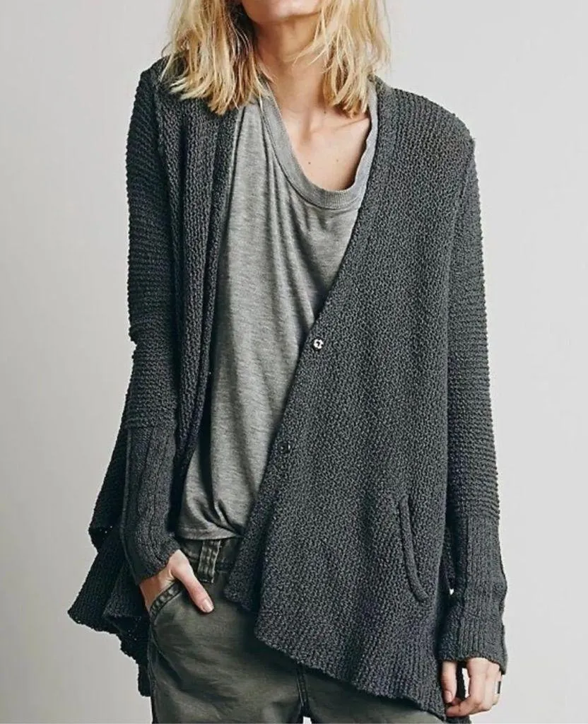 Free People longline oversized cardigan with a handkerchief hem. Beautiful rich berry red / magenta... Show more