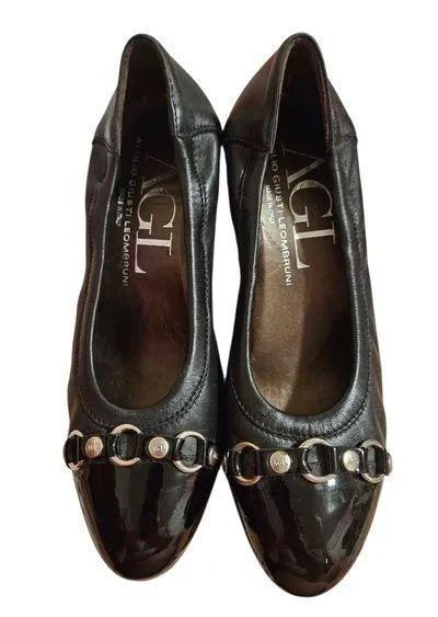 AGL Black Patent Leather Flats with Silver Accents Size 6 - $30 - From Nichole