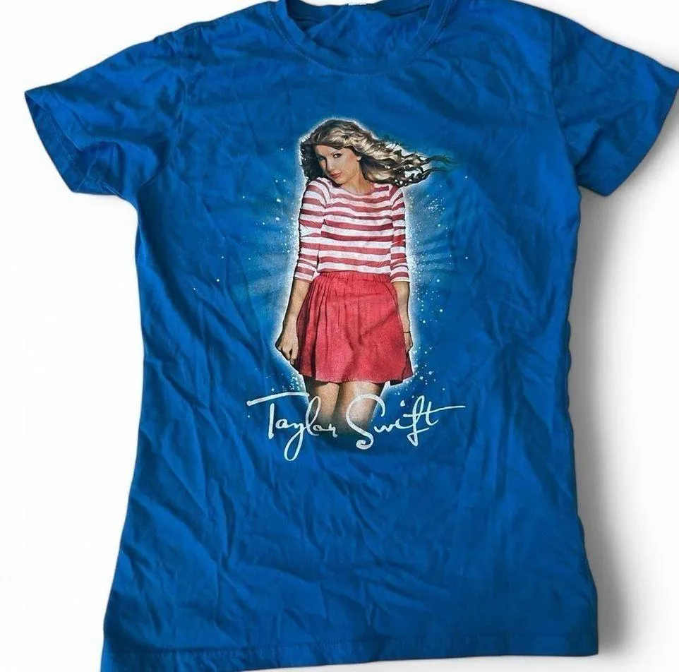 This authentic concert t-shirt from Taylor Swift's Speak Now World Tour 2011 is a must-have for any fan. The shirt is made of comfortable cotton material and features a crew neckline and short sleeves, making it perfect for casual occasions. The slim fit and XXL but runs extremely Small size I would say it fits more like a M/L. Great for teens too. The blue shirt has a Taylor Swift graphic and is an original, not a reproduction. It was made in Pakistan and is a great addition to any wardrobe. #TaylorSwift #Swifty #SpeakNowTour #Vintage #VintageTaylorSwift