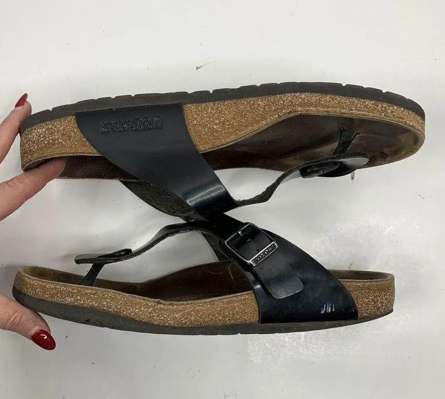 Birkenstock Gizeh Sandals Birko Flor Patent Shoes Flip Flops T Straps Size 41 10 The modern thong s... Show more