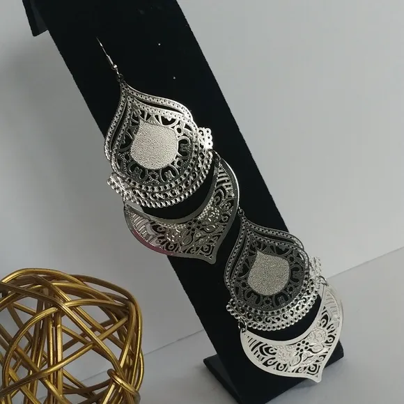 Statement Boho Filagree Silver Tone Earrings - $9 - From Elsa