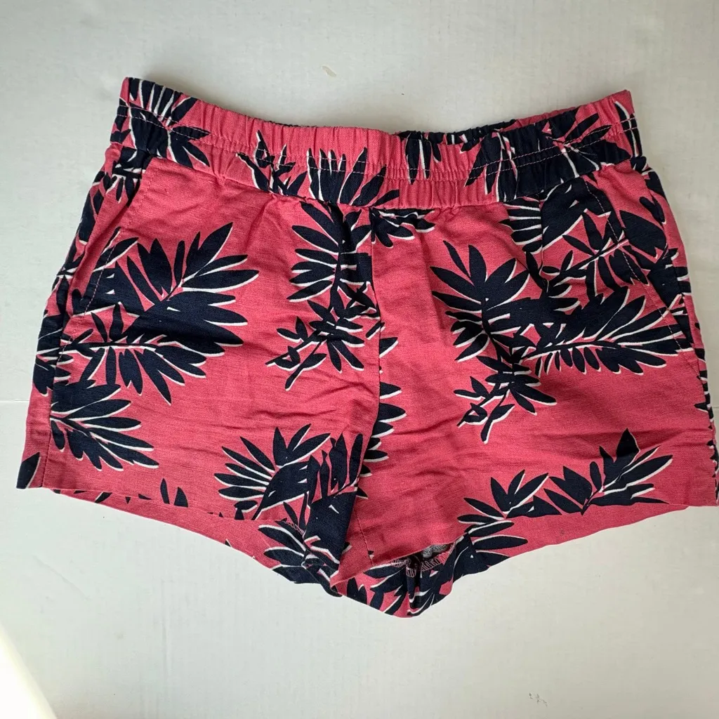 J. Crew factory 3" printed boardwalk pull-on short size 2 feature a pink background with a navy blu... Show more