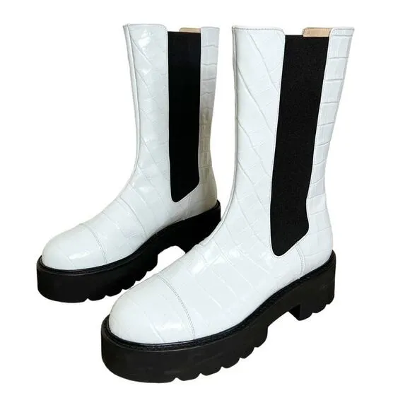 Light blue leather Presley 50mm leather boots from STUART WEITZMAN featuring crocodile effect, elast... Show more