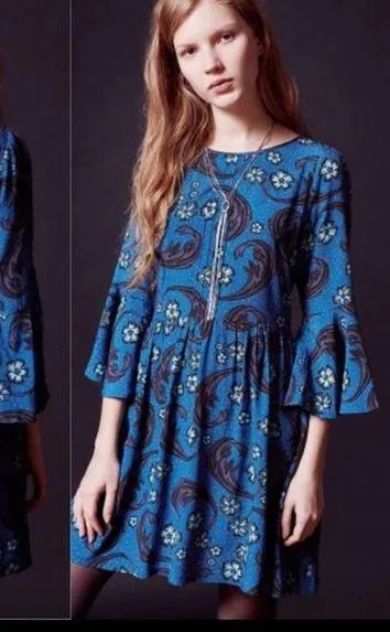 EUC For Love And Lemons X Urban Outfitters Trumpet Bell Sleeve Paisley Floral Babydoll Mini Dress: B... Show more