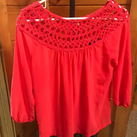 Umgee coral colored dressy 3/4 length sleeve blouse size small