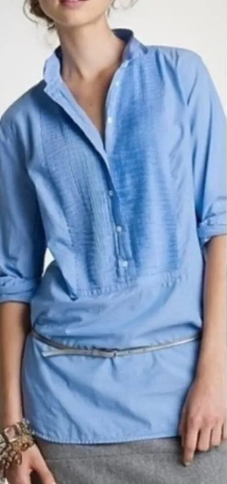 - J. Crew - Tuxedo Beach Tunic 20646 - size small sm - solid blue chambray denim look blouse t... Show more