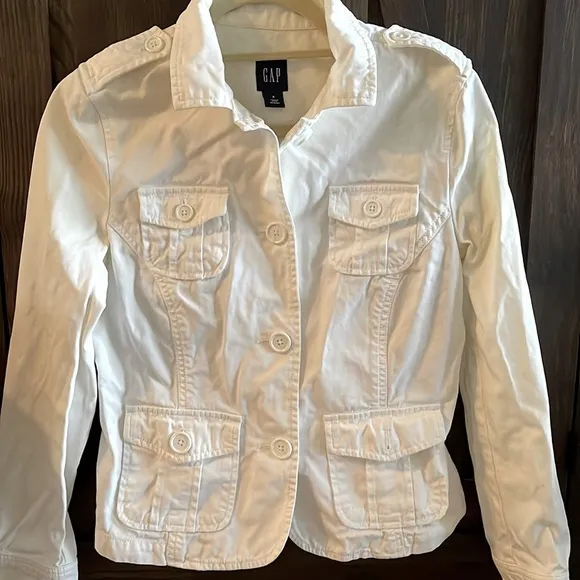 Gap white jacket blazer 100% voting 4 front button closures 4 front pockets Collar Button closure on... Show more