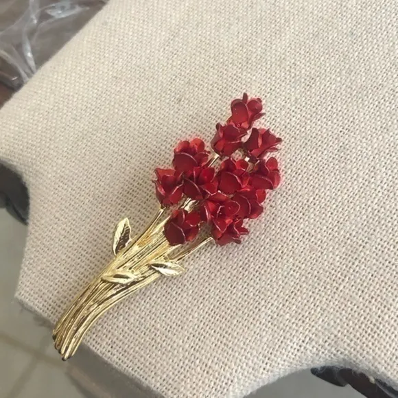 Vintage Avon Jewelry DM97 Gold Tone Dozen Enamel Red Roses Brooch Pin - $25 - From Vanessa