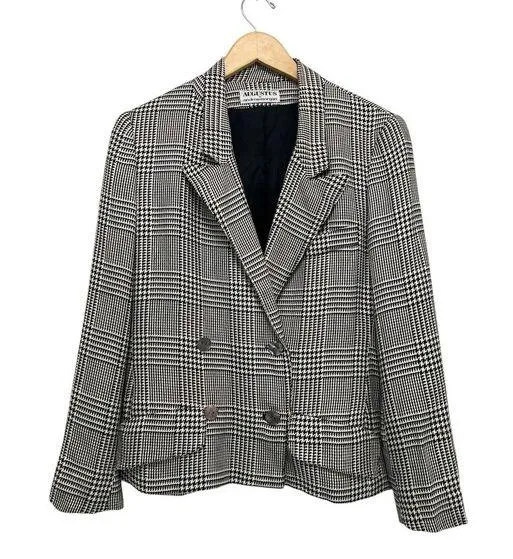 Augustus by Andrew Morgan 90s houndstooth Black and white Blazer Jacket Vintage Academia Preppy Bussiness wear Women's size 6 Front button closure By Andrew Morgan Sateen lining Fully lined Side pockets Great vintage condition! Pre-owned great condition Approx. Measurements Laying Flat Underarm to underarm 19.5" Length Shoulder to hem 24"