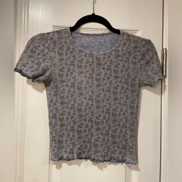 American Eagle Excellent condition Womens size XXS Blue waffle stretch thermal crop top Short sleeve... Show more