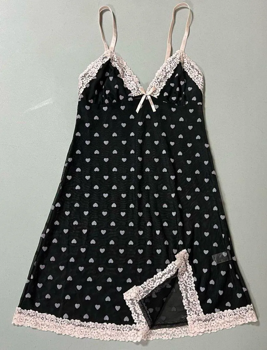 Carrie Amber Intimates Black Pink Heart Hearts Sheer Lace Babydoll Slip Nightie Nightgown Lingerie Dress Size S 🖤🩷 - $75 (15% Off Retail) - From faeriekiss