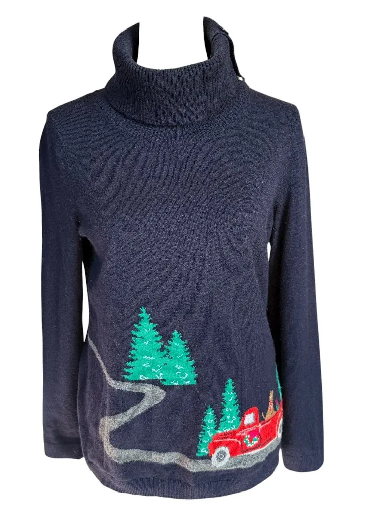 Women's Talbots Petites dark blue long sleeve pullover turtleneck Christmas sweater, size SP. This... Show more