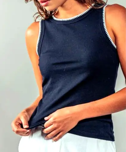 NEW Rachel Zoe // Navy/White Crewneck Rib Knit Top M PTP 16" such a classic and chic look