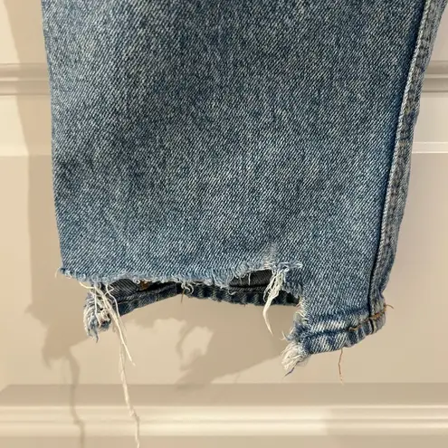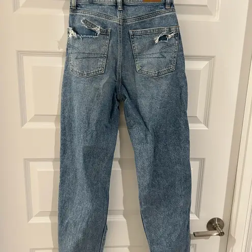 American Eagle SHORT Strigid Highest Rise Baggy Straight ripped jeans, blue, size 000 Short Waist 24... Show more