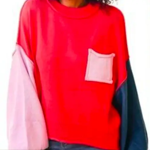 POL Red and Pink Colorblock Sweater Size L - $55 - From Maria