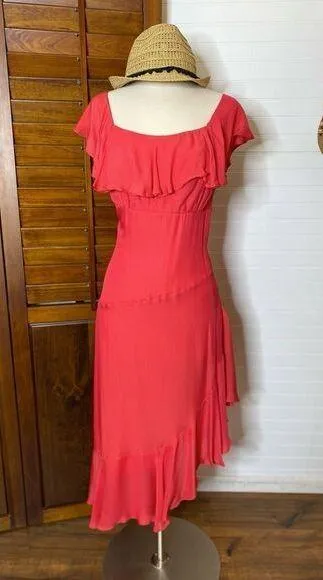 Nicole Miller Collection Silk Flutter Sleeve Coral Dress, Brand New With Tags, Size 2, Excellent Con... Show more