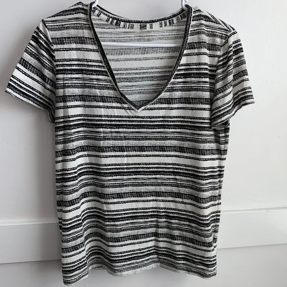 Urban Outfitters White & Black Striped V-Neck Short Sleeve Shirt Size L - $16 (58% Off Retail) - From Hayley