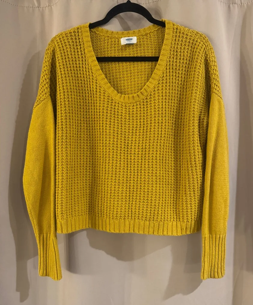 Chic V-neck sweater by Old Navy. Mustard yellow hue. Perfect for layering.