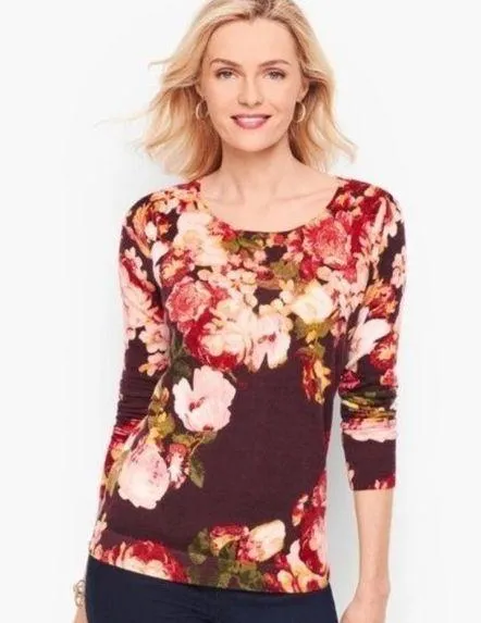 Talbots Gathered Shoulder Merino Wool Sweater. Vibrant florals. Luxe 100% Pure Merino Wool. Super so... Show more
