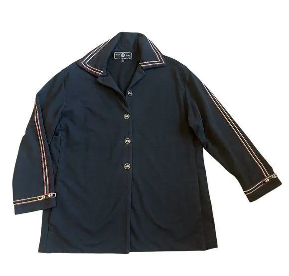 St. John Sport Size small women's US Black button-down cardigan with green, red and gold trim Round... Show more