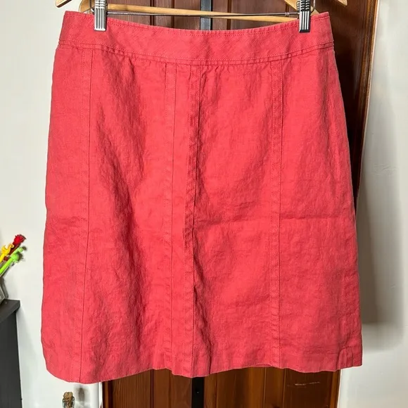 Ann Taylor A Line Knee Length Skirt Back Zipper Pleated 100% Linen Coral Red Size 14