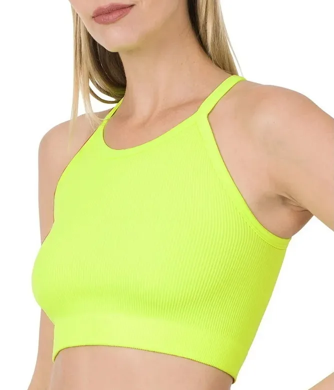 Zenana Ribbed Knit Cropped Cami Tank Top in Neon Lime. Size US S/M. New without tag. #zenana #cami #tanktop #croptop #croppedtop #womenstyle #womenfashion #yoga #gym #athleisure #workout #athleticwear