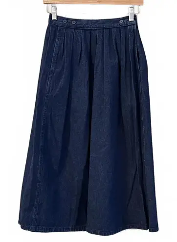 Excellent Condition Vintage Calvin Klein Dark Wash Denim Skirt in a Size 6 • Pleated Design with But... Show more