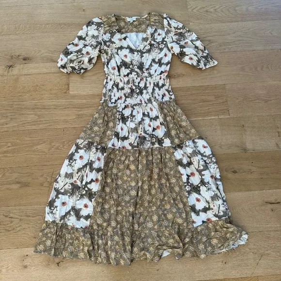 Current Air Multi Floral Tiered Midi Dress in Yellow Green & Cream - $100 (32% Off Retail) - From Dressed in