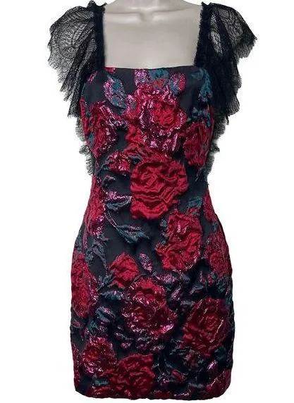 NWT Sandra Mansour jacquard pink roses mini black dress sz 34 US XS - $230 New With Tags - From Jenya