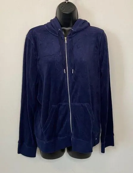 L-RL Lauren Ralph Lauren Blue Velour Velvet Sweater Full Zip Jacket Sz XL NWT