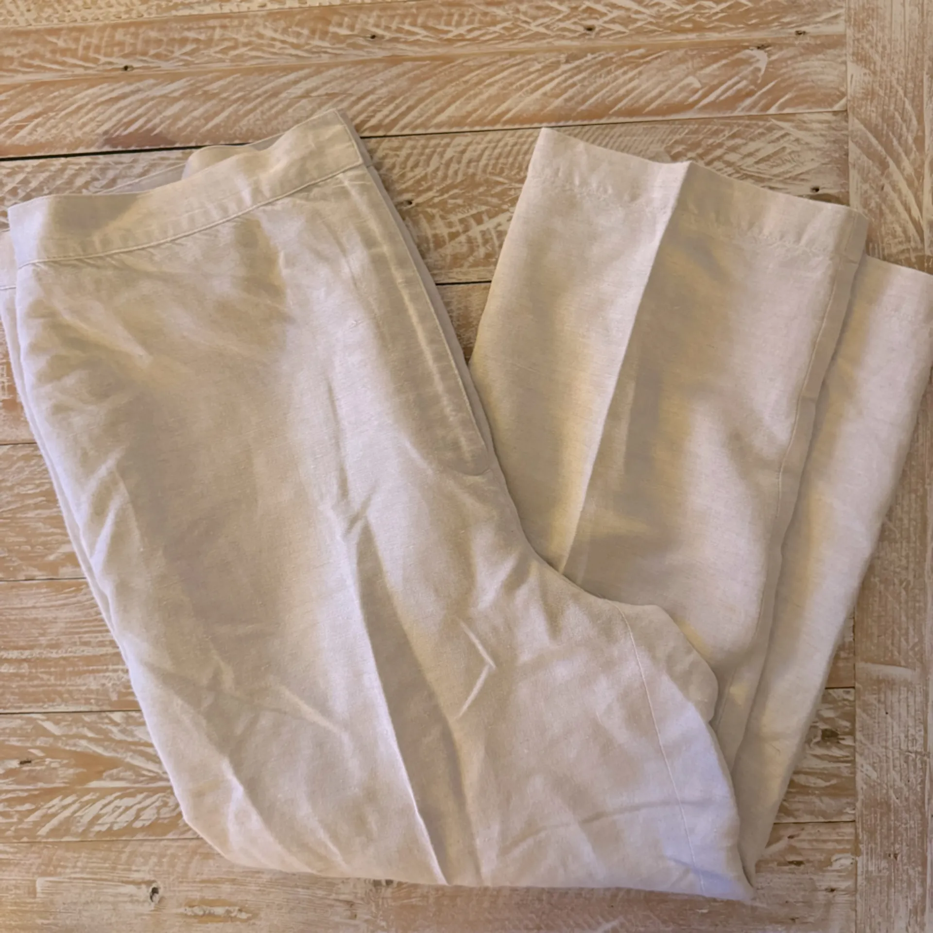 Gorgeous, classy, and on-trend Jones New York Sport capri pants in tan, size 12. Perfect for summer, vacation, or any warm-weather occasion, these pants are made from a lightweight, breathable 55% linen / 45% rayon blend for comfort and style.