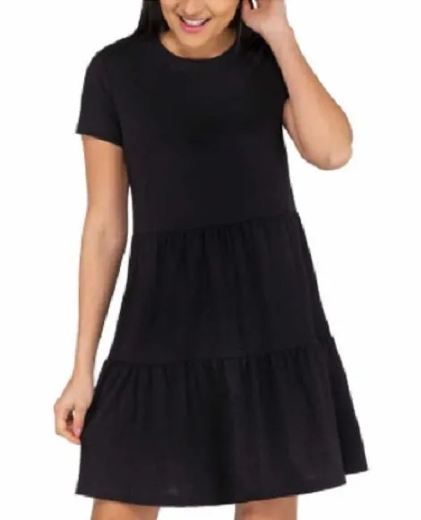 NWT NICOLE MILLER | Black Tiered Babydoll Mini Dress Sz L. In excellent condition. This casual min... Show more